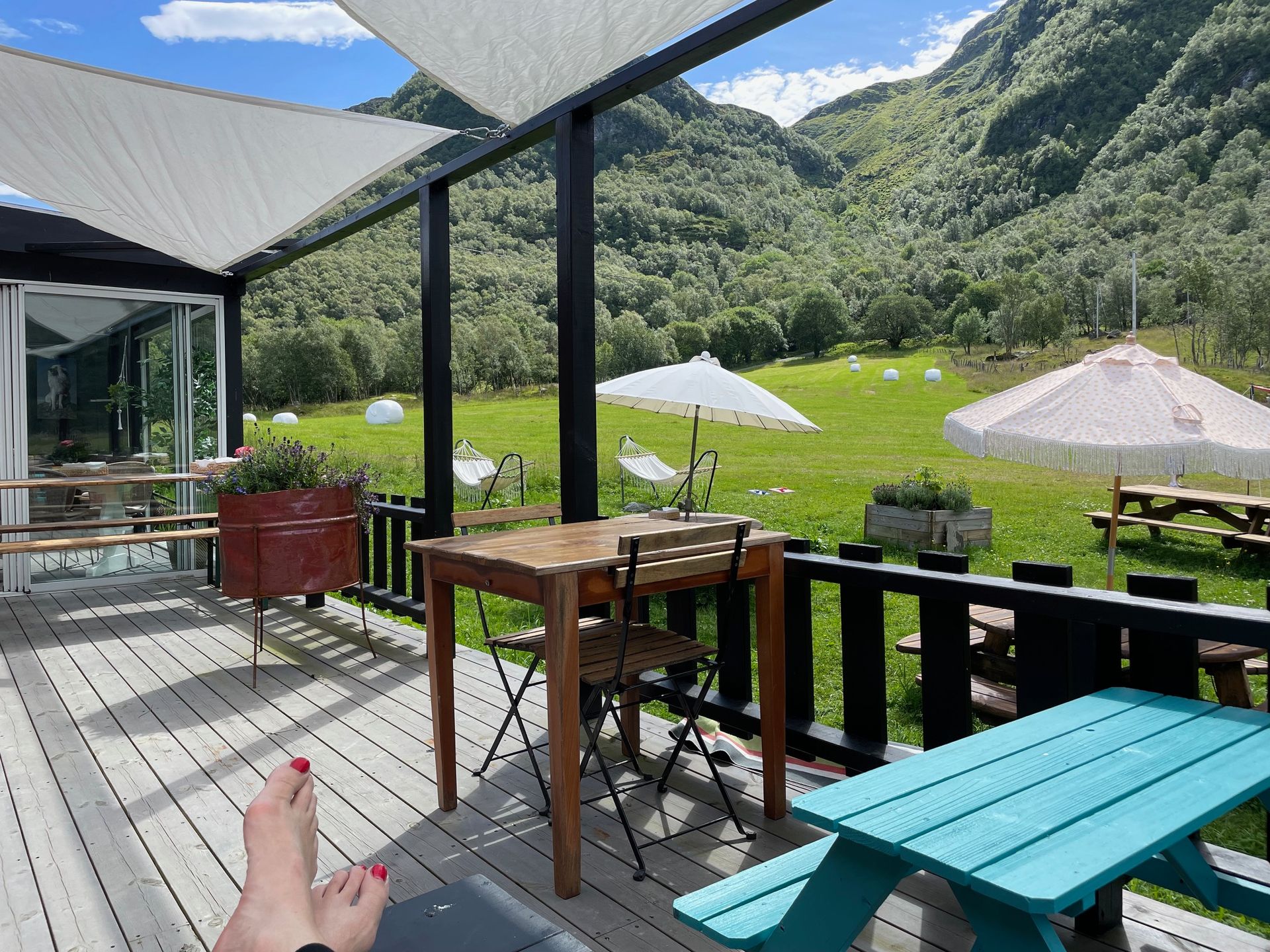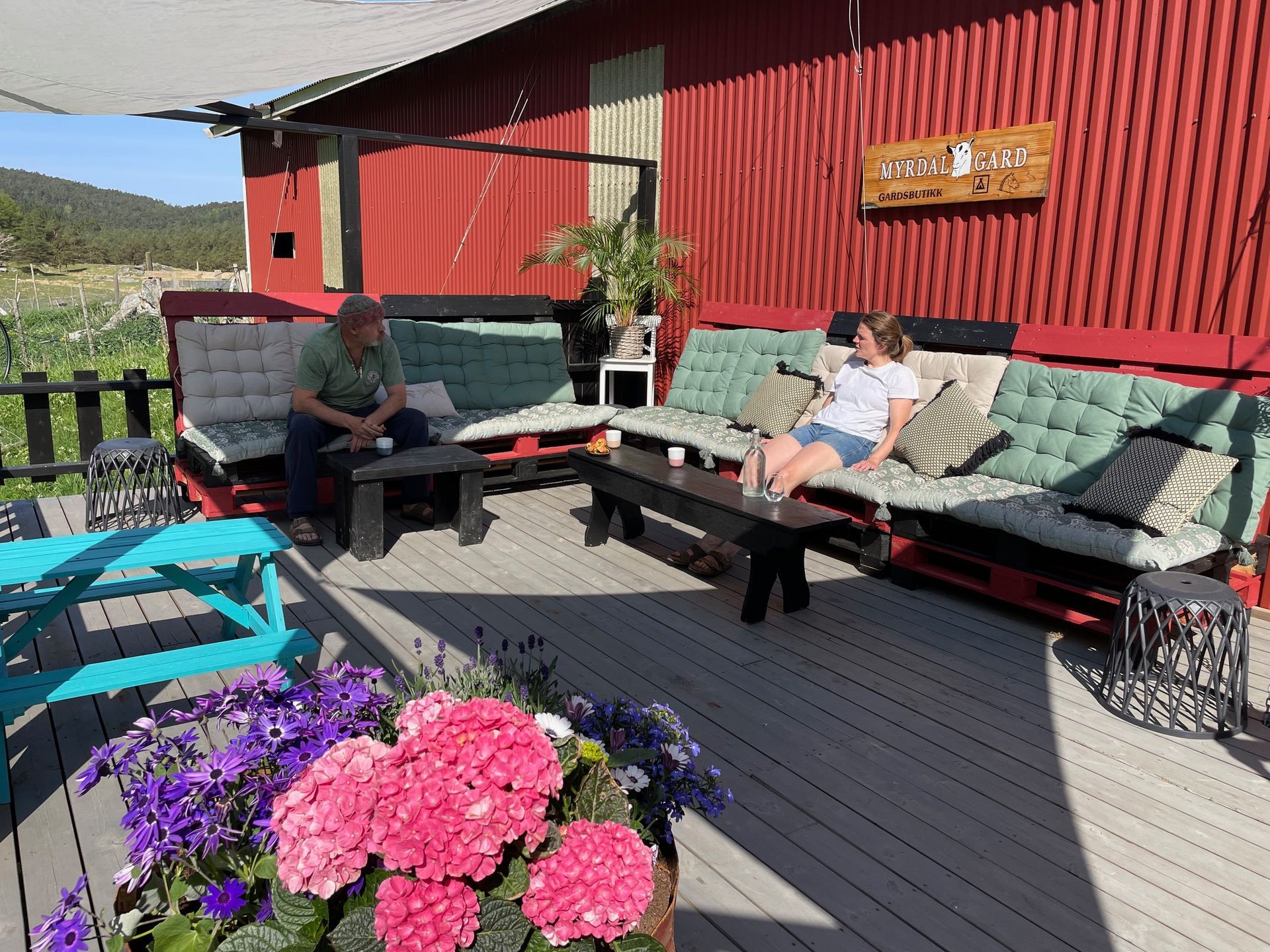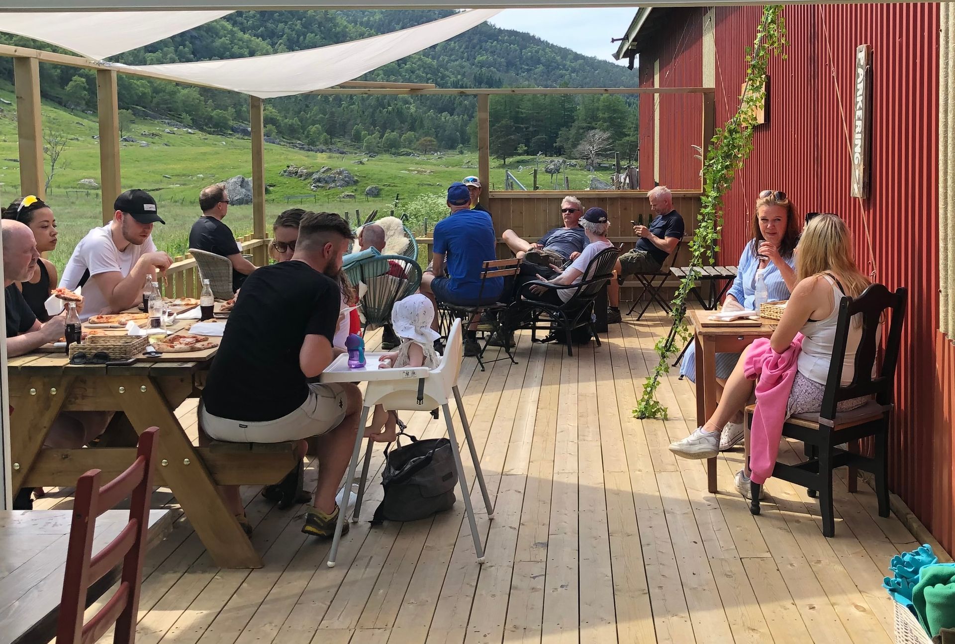 The farm shop is open in spring and summer season. Check our Facebook page for current information and latest news. Feel free to come by to buy cheese or other delicacies made on the farm. Eat pizza from a wood-fired pizza oven. Enjoy the view of Såto, the highest mountain on Tysnes, from the lounge bench on the terrace. Play a little volleyball in the sun, or just run around on the field. The farm shop is the perfect place to charge for a hiking-trip or rest after a hike.